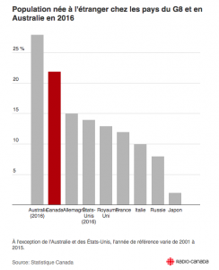Le Canada est toujours un des pays qui accueille le plus d’immigrants au monde. Derrière l’Australie, c’est au Canada qu’on retrouve actuellement le plus d’immigrants dans le monde. Parmi les pays du G8, dont l’Australie ne fait pas partie, c’est au Canada qu’on retrouve la plus forte proportion d’immigrants.