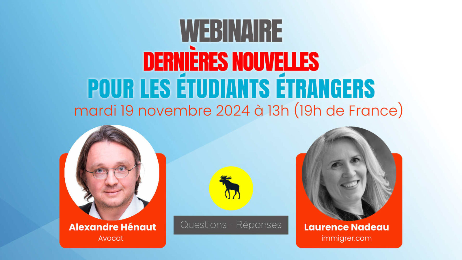 Vous êtes étudiant ou envisagez de le devenir au Québec ou au Canada ? Vous vous posez des questions sur les dernières évolutions des politiques d’immigration et d’études ? Ne manquez pas notre webinaire informatif animé par deux experts renommés : Laurence Nadeau, cofondatrice d’immigrer.com, et Alexandre Hénaut, avocat spécialisé en immigration.